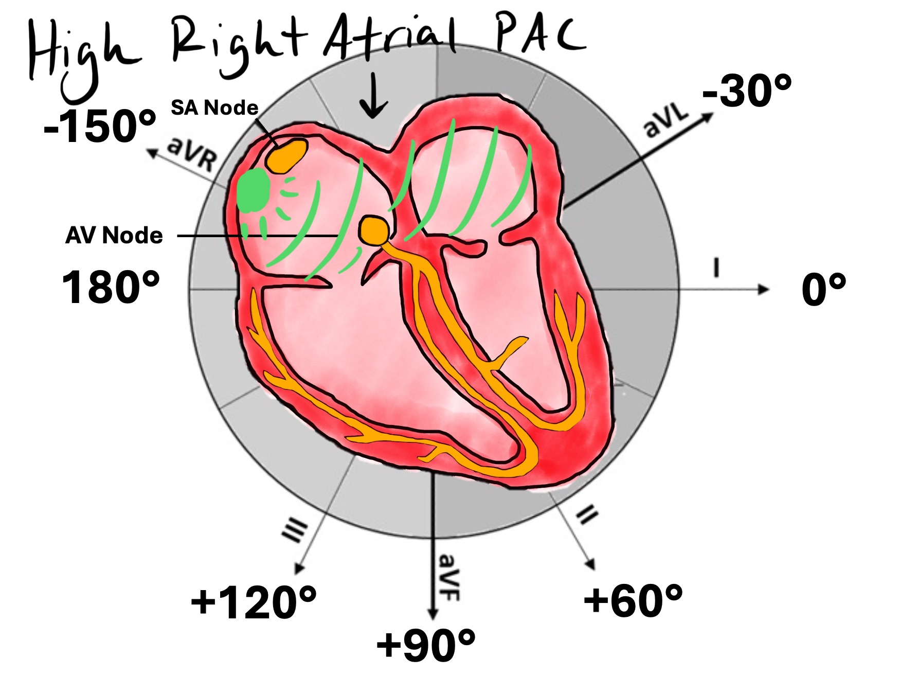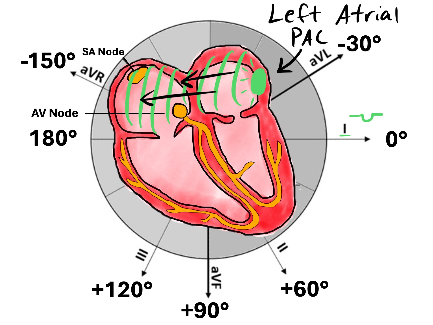 A PAC originates from an atrial focus outside the sinus node, meaning the atria depolarize along a different pathway than the standard superior-to-inferior, right-to-left sinus vector.